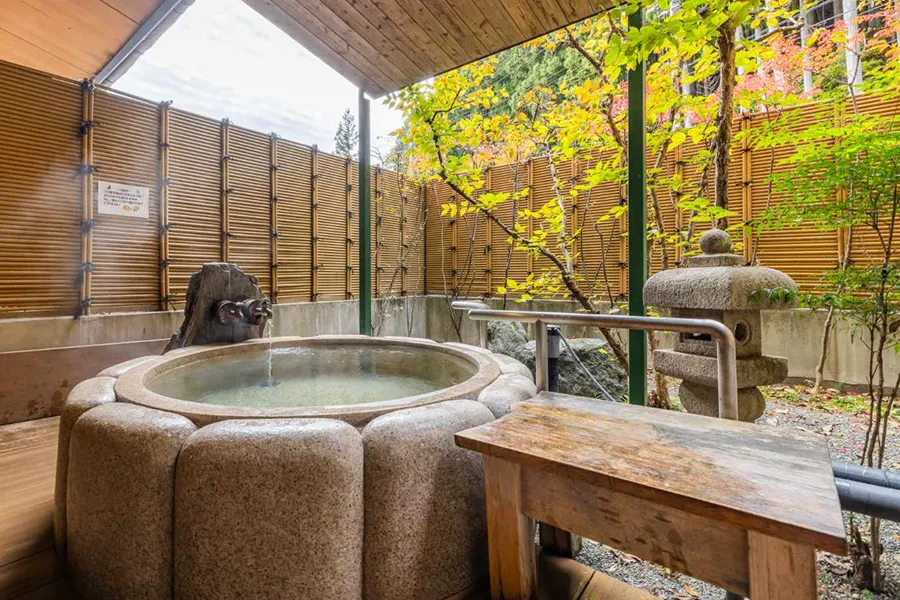 とろりとした肌ざわりの“美人の湯”に浸かりながら、趣の異なる19の湯めぐりを。