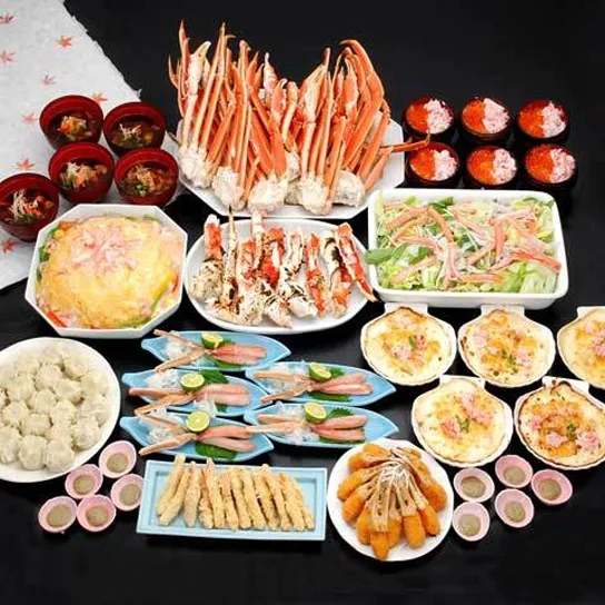 旬をたっぷりと味わえる、和・洋・中の多彩なメニュー。ライブキッチンで焼き上げるステーキや天ぷら、季節の郷土料理など、できたてを思う存分楽しめます。